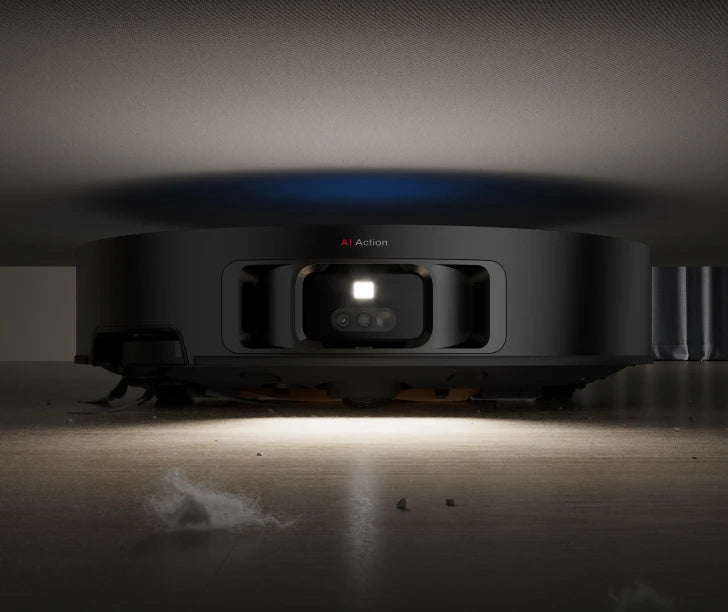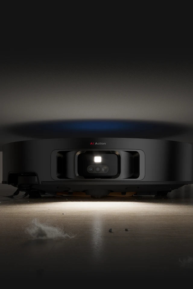 Dank integrierter LED-Leuchten erkennt der X50 Ultra Complete Hindernisse frühzeitig und navigiert sicher selbst durch dunkle Bereiche. In dunklen Umgebungen, wie etwa an regnerischen Tagen, in der Nacht und in abgedunkelten Bereichen werden die Leuchten eingeschaltet, um die Navigation und das Umfahren von Hindernissen zu unterstützen.