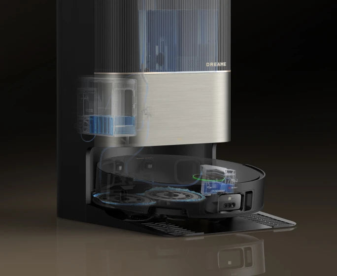 Der leistungsstarke 6.400-mAh-Akku des X50 Ultra Complete ermöglicht bis zu 220 Minuten* Reinigung im Leise-Modus und deckt dabei bis zu 205 m² Fläche mit einer einzigen Ladung ab. Sobald der Akkustand niedrig ist, kehrt das Gerät automatisch zum Aufladen zur Dockingstation zurück und setzt den Reinigungsvorgang anschließend an genau der Stelle fort, an der es aufgehört hat. 30 % schnelleres* Aufladen, mit der Aufladeoption in Nebenlastzeiten.