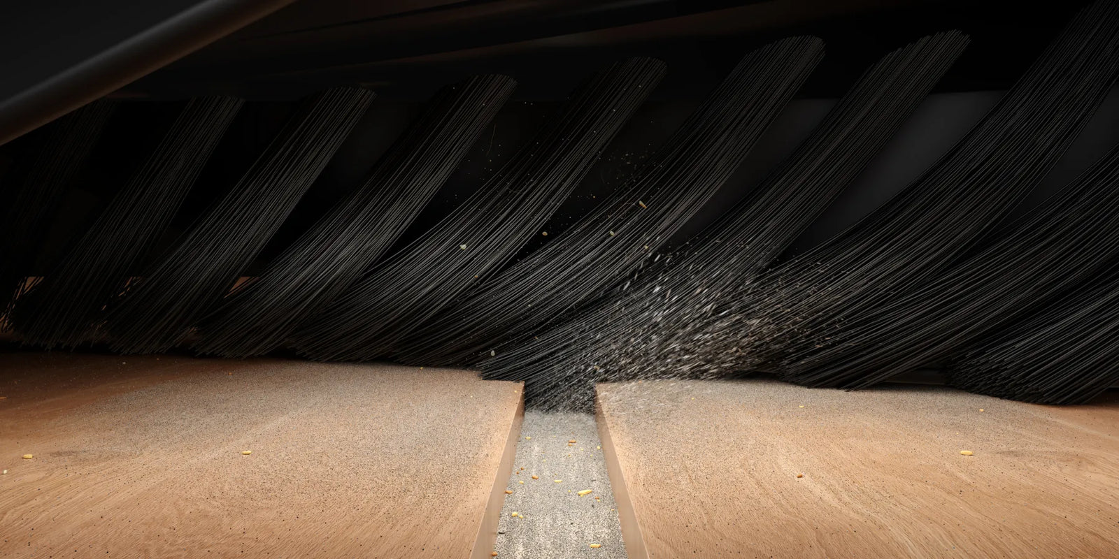 *10 mm: basierend auf in unserem internen Labor durchgeführten Tests. Die Anhebehöhe ist definiert als der Abstand zwischen der Oberseite der Bürstenborsten und dem Boden nach dem Anheben der Seitenbürste.