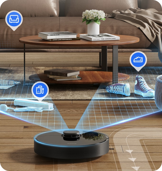 Dank der fortschrittlichen KI- und LDS-Hinderniserkennung wird ohne manuellen Aufwand gereinigt. Mit der KI werden Hindernisse präzise erkannt und vermieden, Räume zur Empfehlung von Reinigungsstrategien identifiziert und Karten Ihrer Wohnräume erstellt – für eine effektive, effiziente Reinigung, bei der keine Stellen ausgelassen werden.