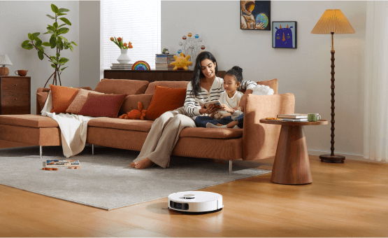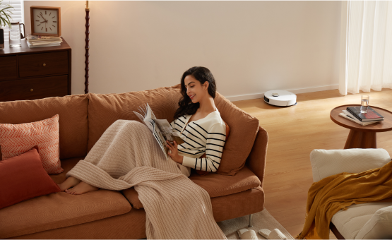 Lassen Sie den Roboter Ihre Wohnung schnell und zuverlässig reinigen, während Sie auf dem Sofa liegen. Genießen Sie den Komfort einer automatischen Reinigung zusammen mit einem leistungsstarken System zur Geräuschreduzierung.