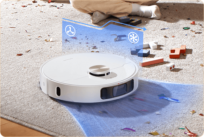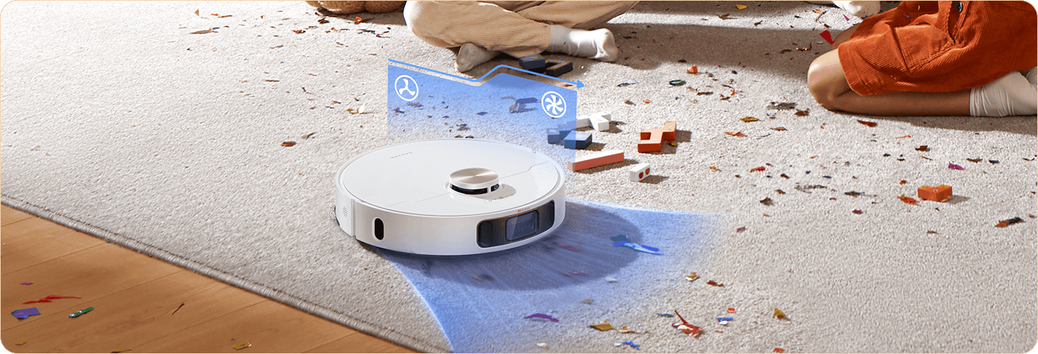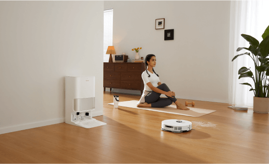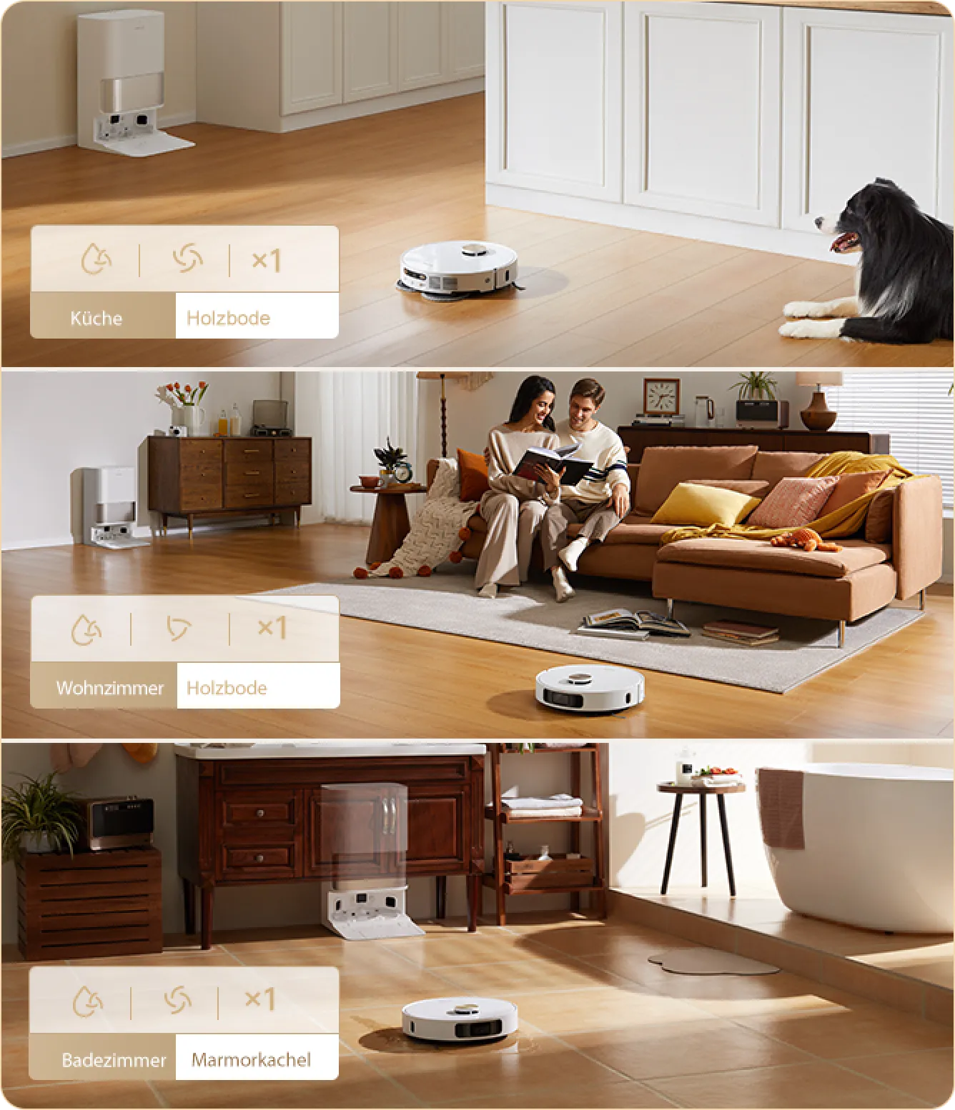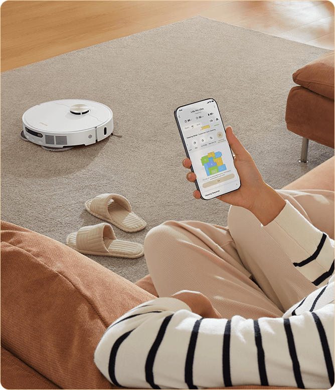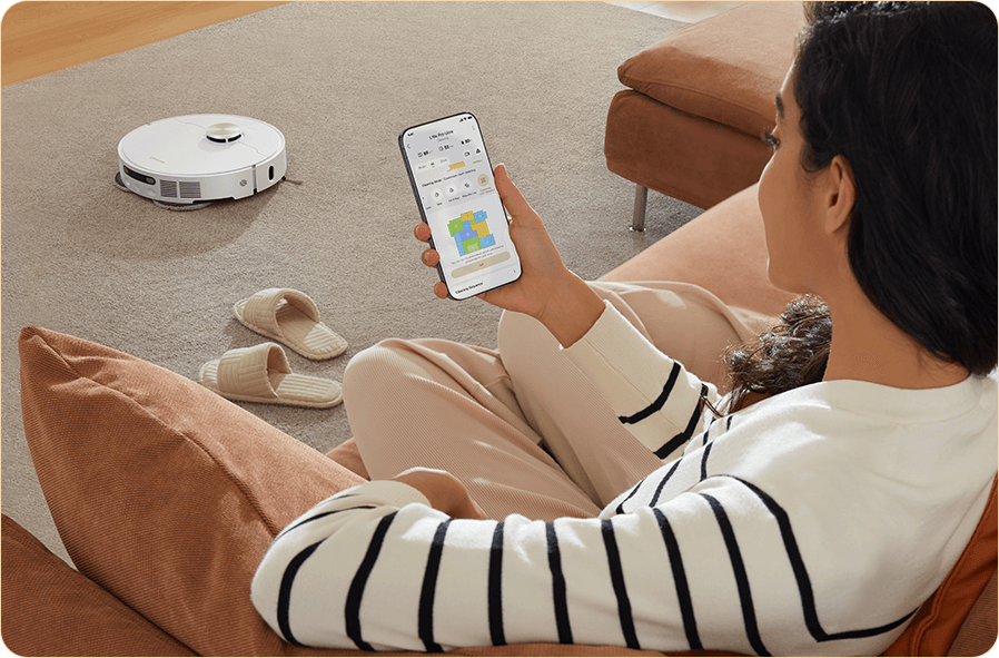 Lassen Sie den Roboter Ihre Wohnung schnell und zuverlässig reinigen, während Sie auf dem Sofa liegen. Genießen Sie den Komfort einer automatischen Reinigung zusammen mit einem leistungsstarken System zur Geräuschreduzierung.