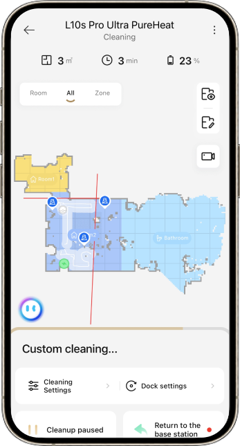 Starten oder stoppen Sie Reinigungsvorgänge mit nur einem Wort. Nutzen Sie den praktischen Sprachassistenten, um Ihren Saugroboter durch Ihr Zuhause zu leiten.