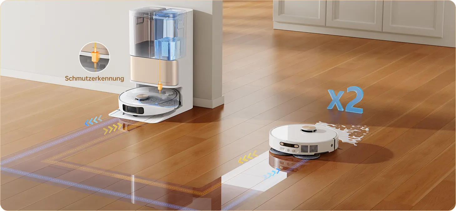Intelligente Schmutzerkennung und automatische Moppreinigung