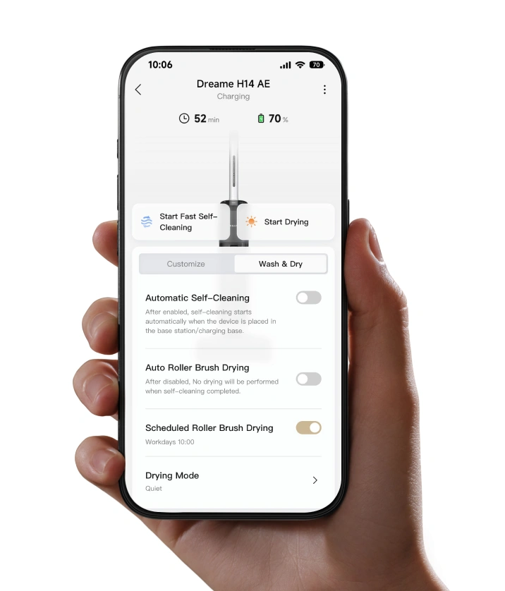 *30 min 60°C drying: Under conditions of 20–25℃ temperature and 45% RH, based on Dreame Lab testing. Actual usage may vary. (Report No.: 250408-006-32).