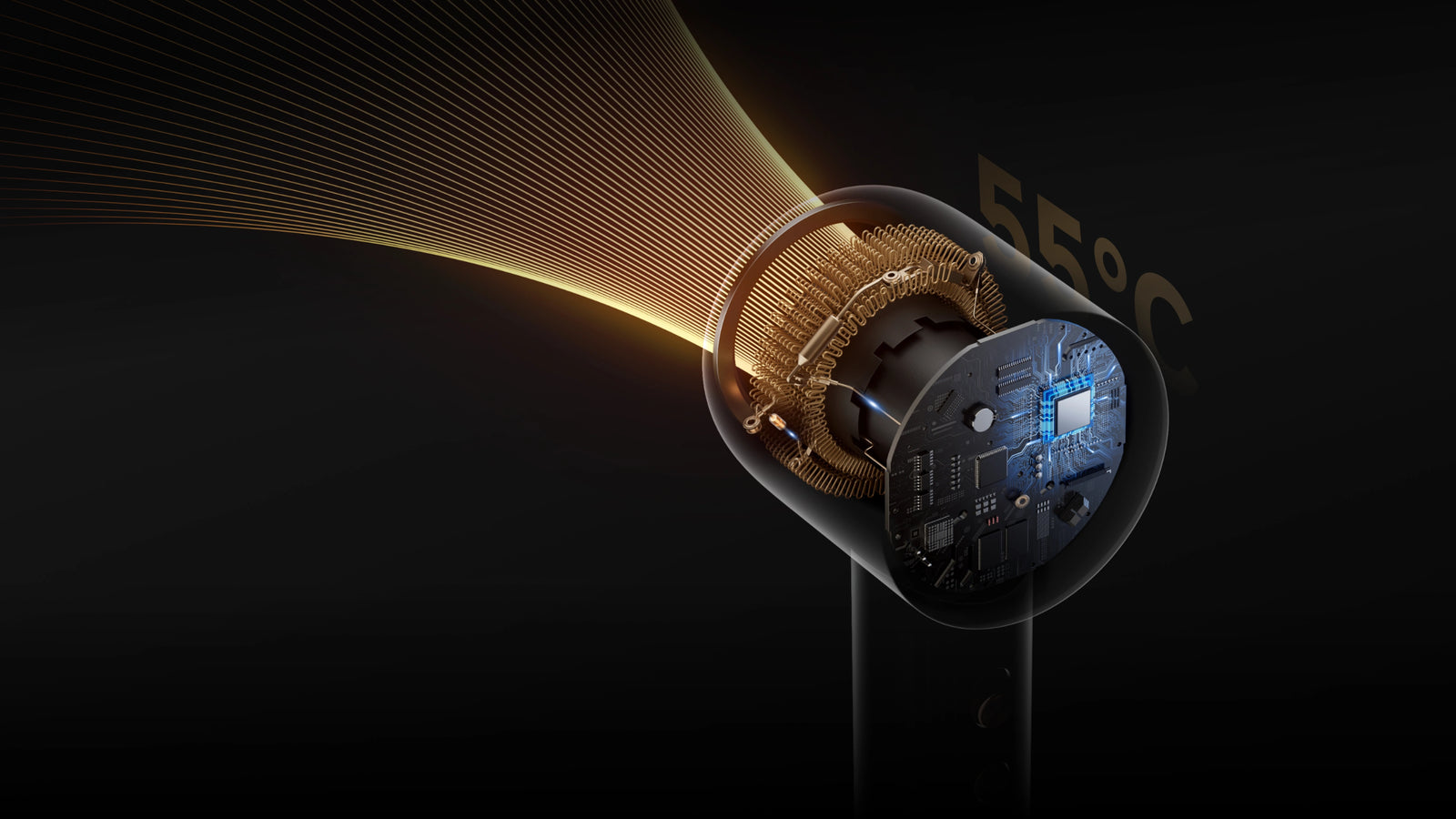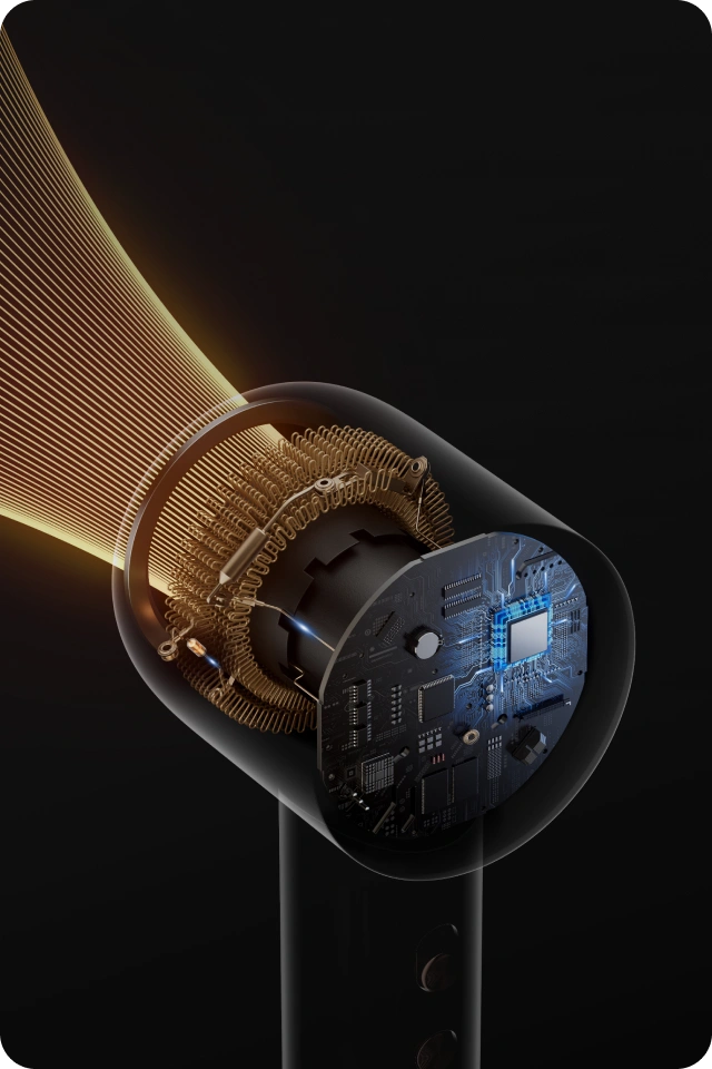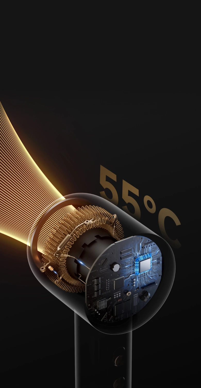 Unser leistungsstarker bürstenloser Motors erzeugt einen beeindruckenden Luftstrom, der schulterlanges Haar in nur 2 Minuten* trocknet. Dank der Heiztechnologie mit zwei Ebenen gibt der Glory Mix die Wärme gleichmäßig und kontinuierlich ab, sodass Sie Zeit sparen.