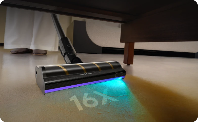 *16X sichtbarer: Basierend auf Tests aus dem internen Labor. Die CelesTect™-LED-Leuchte verbessert die Sichtbarkeit von Staub, da sie die Staubschatten bis zu 16-fach vergrößert. Die tatsächlichen Ergebnisse können je nach Beleuchtung und Umgebung variieren.