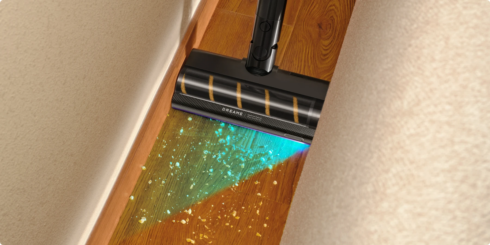 *250 m²: Basierend auf Tests im Dreame Labor, die im Eco-Modus mit der Multi-Oberflächenbürste durchgeführt wurden. Die tatsächliche Leistung variiert je nach Ihrer individuellen Wohnungseinrichtung.
