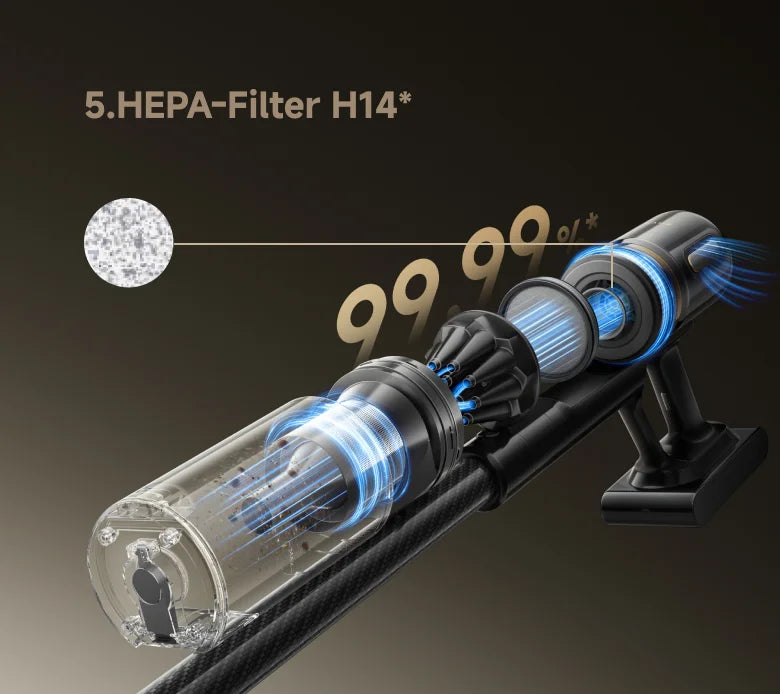*≥0,1 µm Partikelfiltration, 99,99 % Filtrationseffizienz: Erreicht eine Gesamtfiltrationseffizienz von bis zu 99,99 % für Partikel mit einer Größe von bis zu 0,1 µm. Basierend auf Tests von SGS gemäß IEC 62885-4:2020 (modifiziert zur Messung der Filtrationseffizienz für Partikel mit einer Größe von 0,1 µm). Prüfbericht Nr. SHFT250700031271.