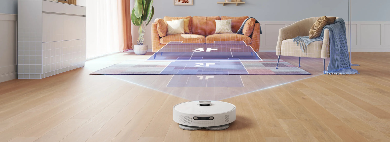 Mittels der fortschrittlichen Ultraschall-Teppicherkennung kann der L10 Prime Teppichböden identifizieren und seine Mopps um bis zu 7 mm* anheben, damit Ihr Teppich sauber und trocken bleibt.