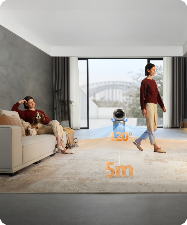Genießen Sie einen individuell einstellbaren Luftstrom für alle Personen in Ihrem Zuhause. Ist nur eine Person anwesend, folgt der Luftstrom ihrer Position; bei mehr als einer Person bewegt er sich intuitiv von einer Seite zur anderen*, um eine gleichmäßige und verbesserte Versorgung mit Luft zu ermöglichen.