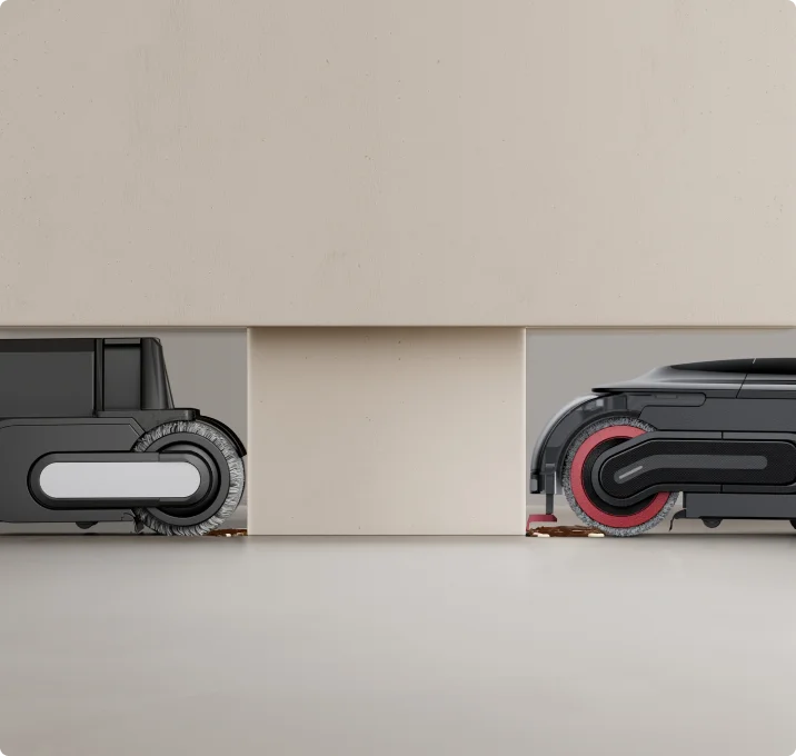 *Dreifache Kantenreinigung: Der Abstand zwischen der Wand und der vorderen, linken und rechten Seite der Bürste kann zur Staubentfernung auf 0 mm reduziert werden, basierend auf GTT Surface Cleaning & Air Treatment Laboratory.