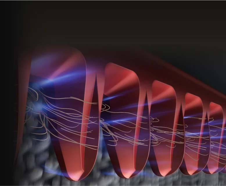 Die scharfen Kammzähne des elastischen TangleCut™-Schabers zerteilt Haare, die beim Saugen an der Bürste hängen geblieben sind, sodass sich keine Verhedderungen* bilden und Haare nicht per Hand entfernt werden müssen.