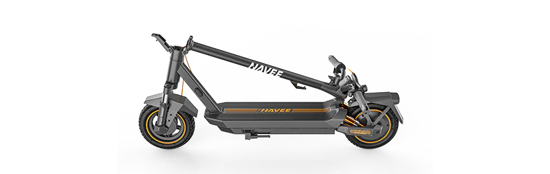 Die schwarzen und goldenen Details dieses Rollers bieten eine perfekte Mischung aus Stil und Komfort und machen jede Fahrt luxuriös und angenehm.