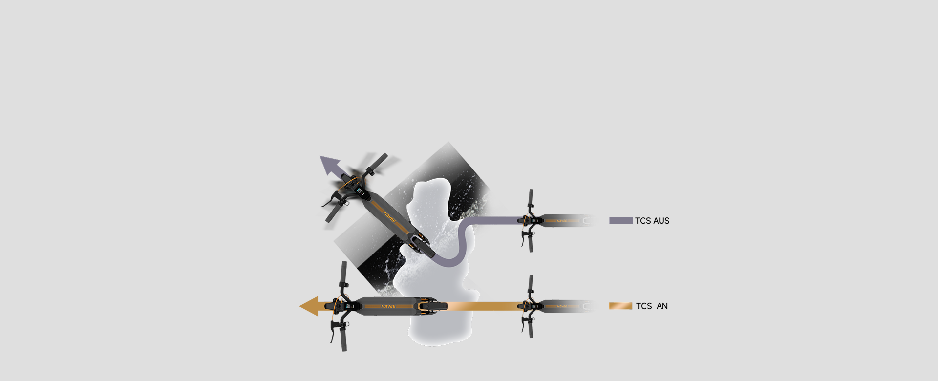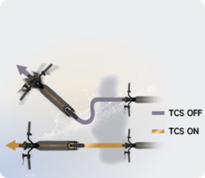 Das geräumige Deck bietet eine stabile Fahrt mit großzügiger Fußfreiheit, ergänzt durch die hohe Bodenfreiheit, die müheloses Navigieren durch unwegsames Gelände ermöglicht. Diese Kombination sorgt für eine ruhige Fahrt auf anspruchsvollen Oberflächen.