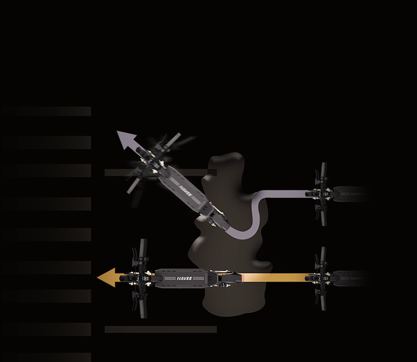 Wechseln Sie über die NAVEE APP zwischen den Modi „Fußgänger“, „Standard“ und „Sport“. Wählen Sie im Sportmodus „Turbo“ für eine schnelle Beschleunigung oder „Eco“ für eine ruhigere, energieeffiziente Fahrt.