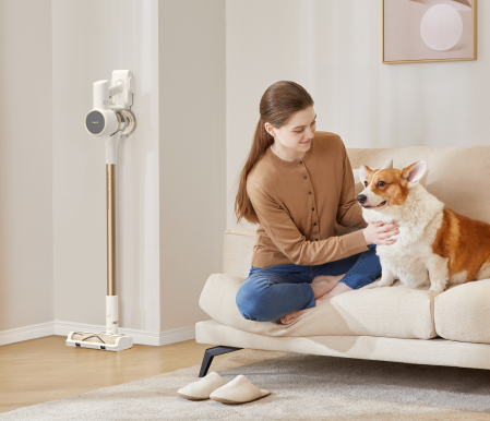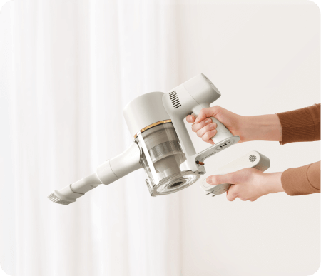 Reinigen Sie Ihr gesamtes Zuhause mit einer Saugleistung von 120 AW/20 kPa – dank eines Akkus mit 7 x 2.500 mAh und einem bürstenlosen Hochgeschwindigkeitsmotor mit 120.000 U/min. So erfassen Sie überall Haare, Schmutz, Staub und Rückstände.