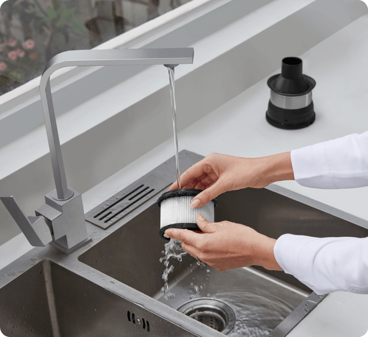 Mühelose Wartung mit waschbaren Komponenten.