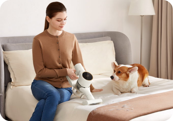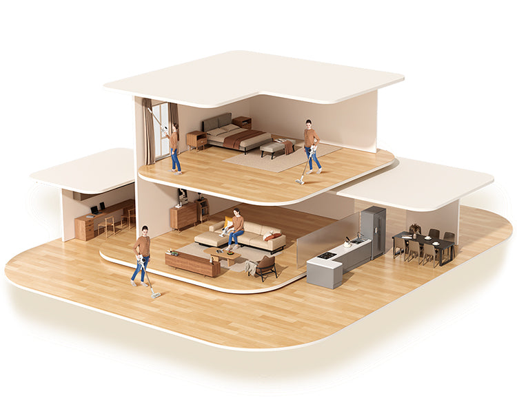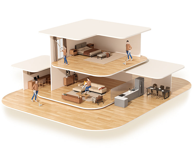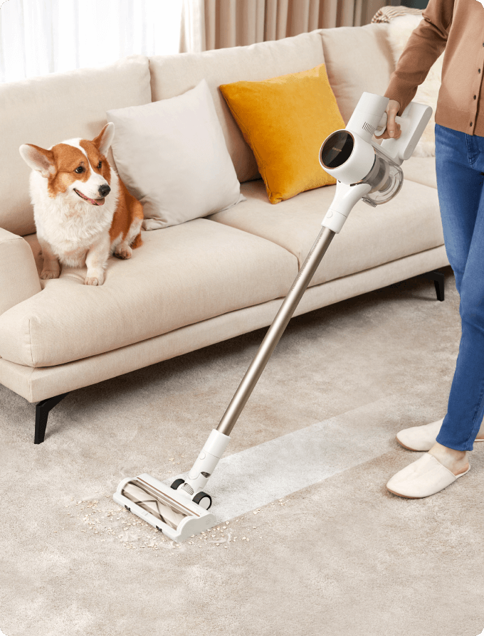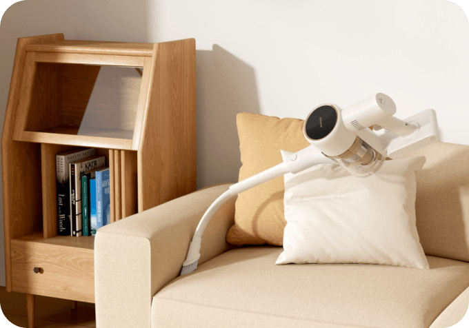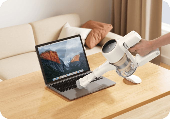 Reinigen Sie Ihr gesamtes Zuhause mit einer Saugleistung von 120 AW – dank eines Akkus mit 7 x 2.500 mAh und einem bürstenlosen Hochgeschwindigkeitsmotor mit 120.000 U/min. So erfassen Sie überall Haare, Schmutz, Staub und Rückstände.