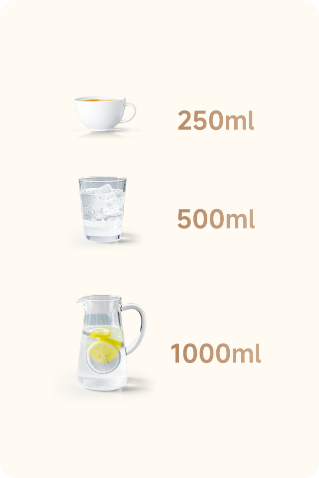 *Der Wasserbehälter mit einem Fassungsvermögen von 2,7 Litern bietet bei durchschnittlichem Verbrauch bis zu zwei Tage lang Wasser, basierend auf Tests in unserem hauseigenen Labor.