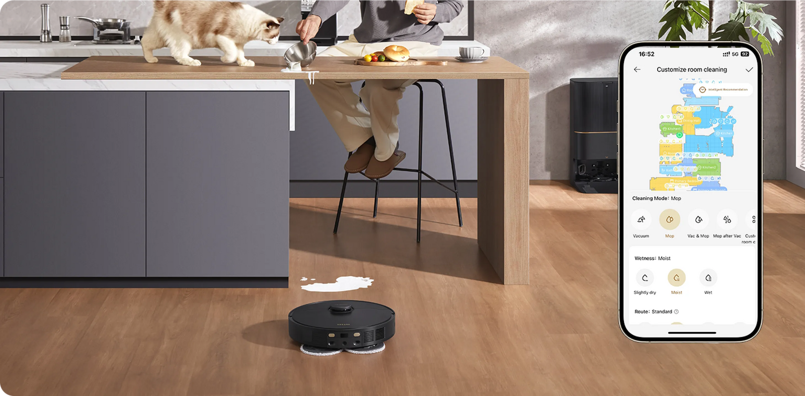 9. Doppelte Mopp- und Bodenreinigung: Verfügbar, sobald die Nutzer die Funktion im CleanGenius™-Modus in der App eingerichtet haben.